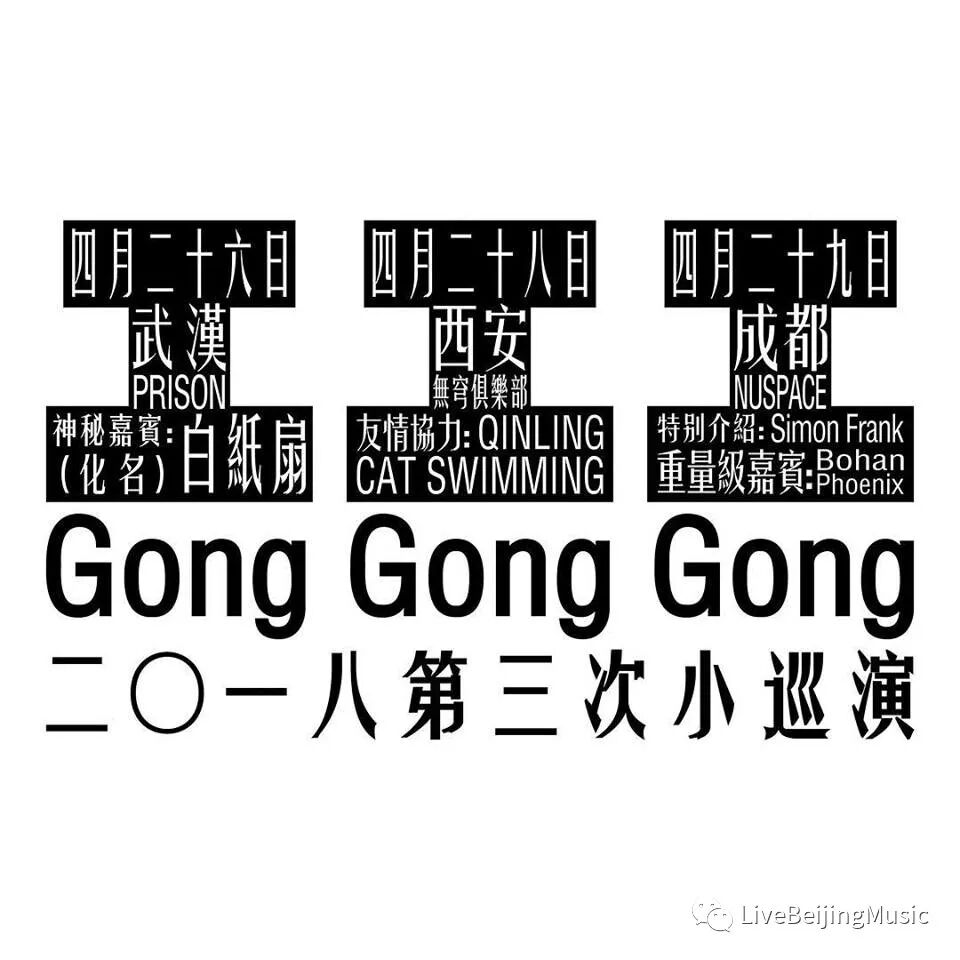 Catch Gong Gong Gong in Wuhan, Xi’an, and Chengdu (poster below) and at Modernista on May 3rd with Li Jianhong, Simon Frank, and more.